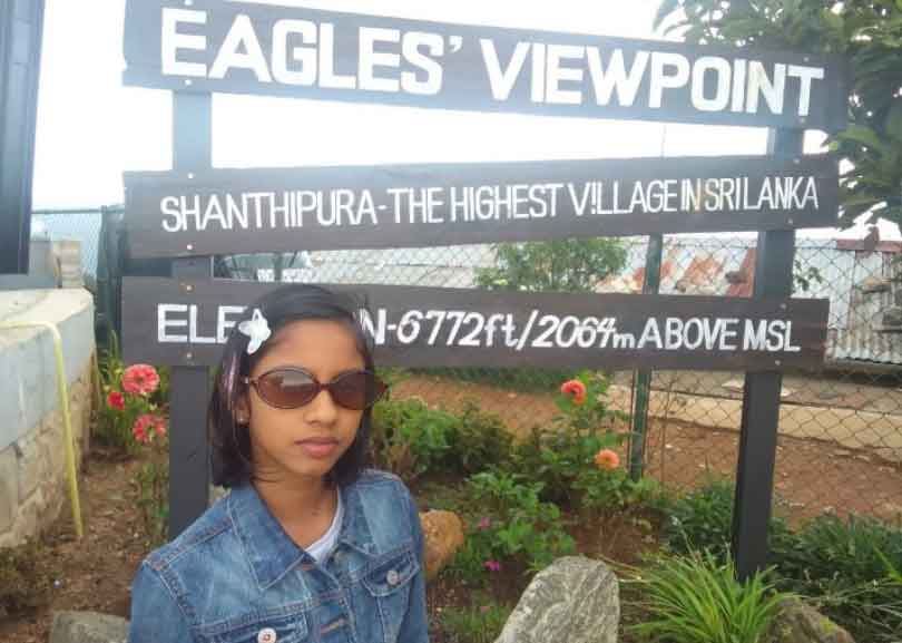 During my school vacation I visited Nuwara Eliya where hills are covered by bright green tea bushes looking like a soft green carpet. First, we visited ‘Eagles’ View Point’ in Shanthipura. It is the highest village in Sri Lanka and 2,064 metres above mean sea level (MSL). It was a very adventurous climb.