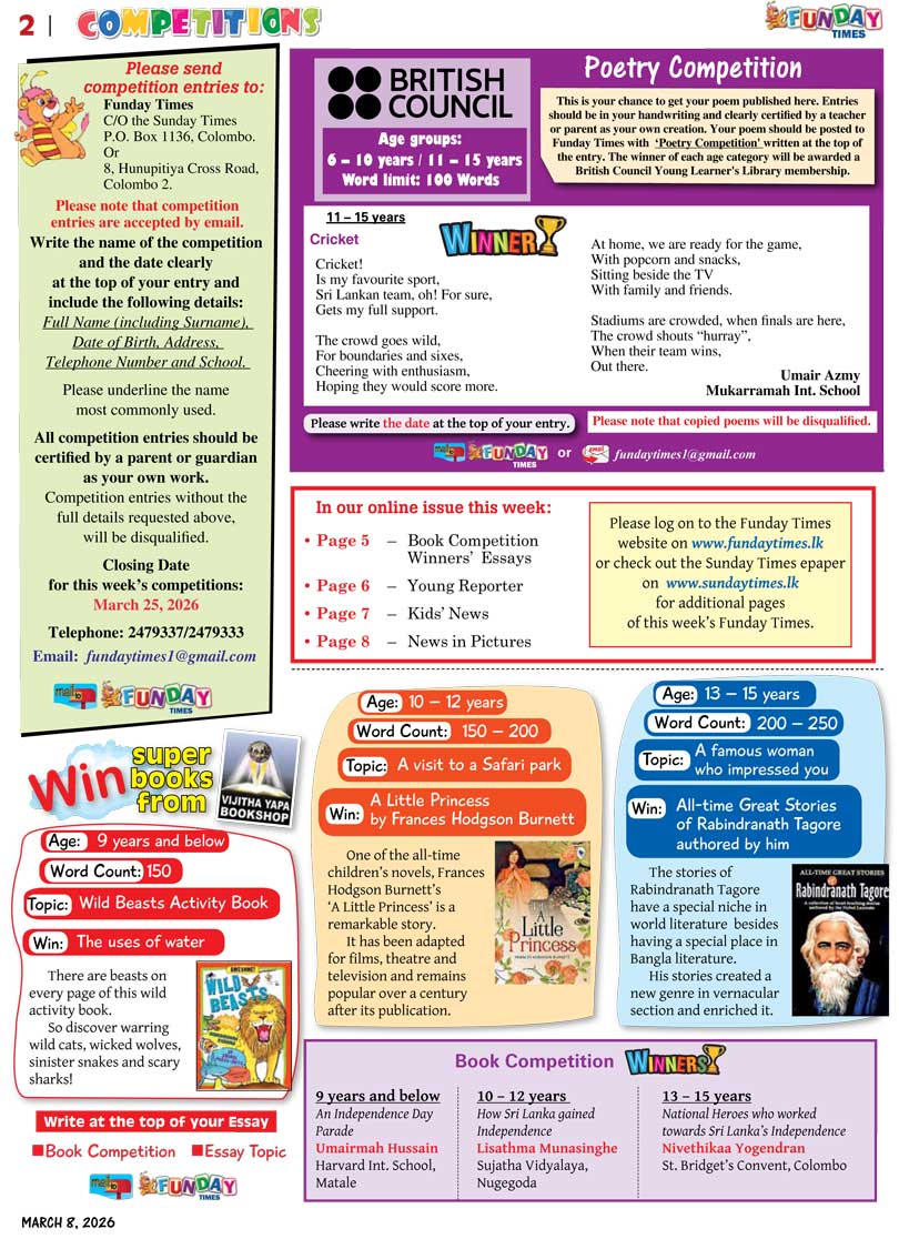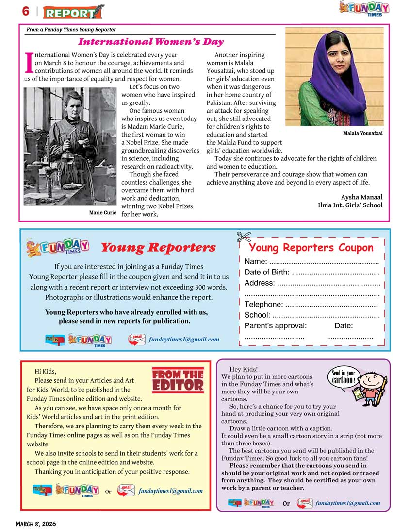 Funday Times is the children’s section of the Sunday Times newspaper. The paper carries a wide range of activities and reading materials to interest children from 4 to 15 years. It also features articles from our young reporters, art and short articles from children. The Funday Times website aims to complement the activities of the publication by furthering young reader engagement and learning.