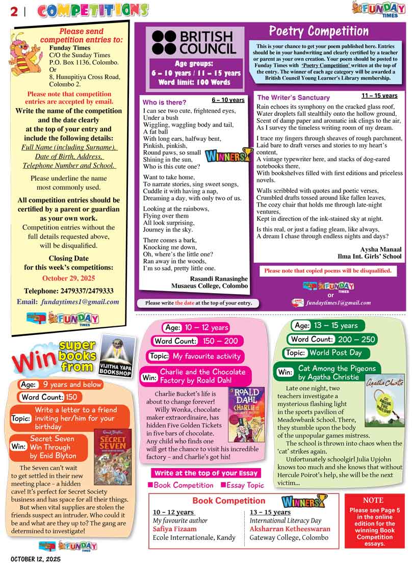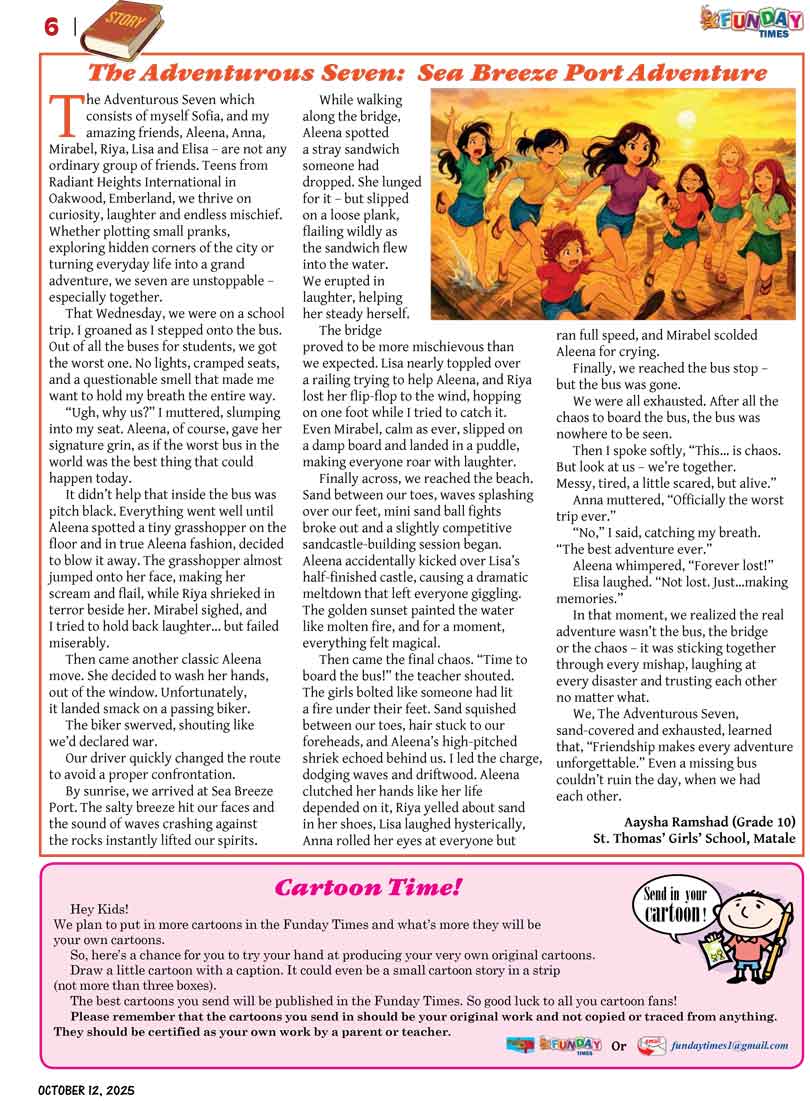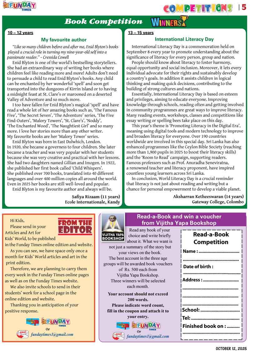 Funday Times is the children’s section of the Sunday Times newspaper. The paper carries a wide range of activities and reading materials to interest children from 4 to 15 years. It also features articles from our young reporters, art and short articles from children. The Funday Times website aims to complement the activities of the publication by furthering young reader engagement and learning.