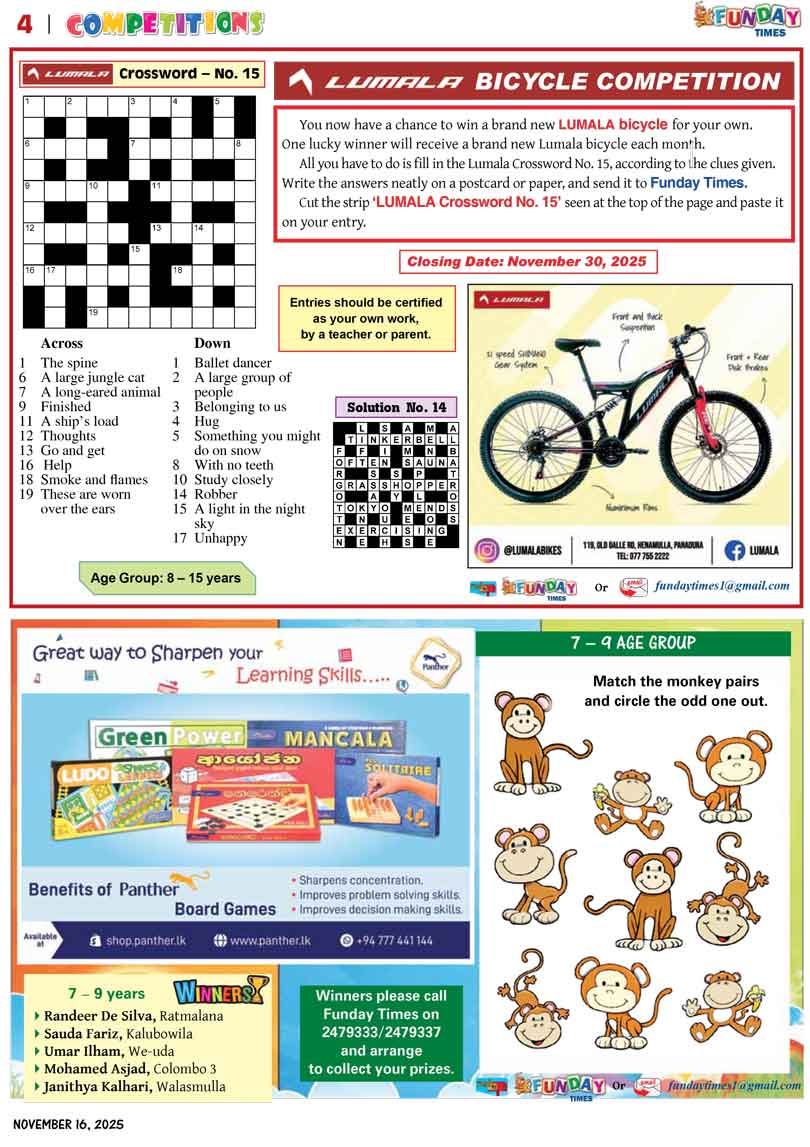 Funday Times is the children’s section of the Sunday Times newspaper. The paper carries a wide range of activities and reading materials to interest children from 4 to 15 years. It also features articles from our young reporters, art and short articles from children. The Funday Times website aims to complement the activities of the publication by furthering young reader engagement and learning.