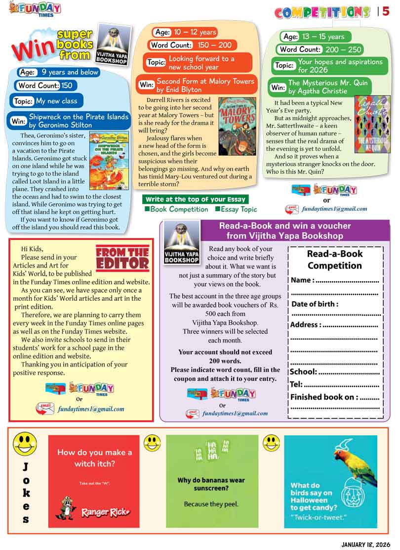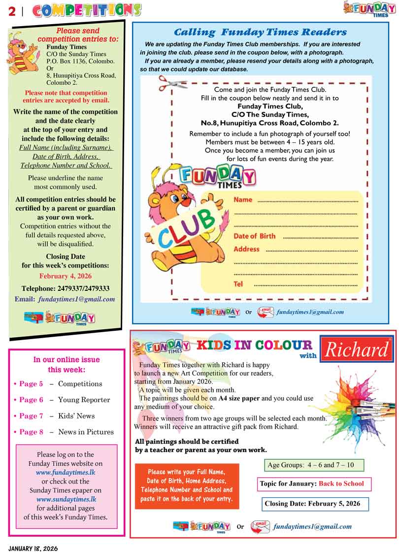 Funday Times is the children’s section of the Sunday Times newspaper. The paper carries a wide range of activities and reading materials to interest children from 4 to 15 years. It also features articles from our young reporters, art and short articles from children. The Funday Times website aims to complement the activities of the publication by furthering young reader engagement and learning.