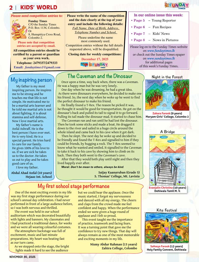 Funday Times is the children’s section of the Sunday Times newspaper. The paper carries a wide range of activities and reading materials to interest children from 4 to 15 years. It also features articles from our young reporters, art and short articles from children. The Funday Times website aims to complement the activities of the publication by furthering young reader engagement and learning.