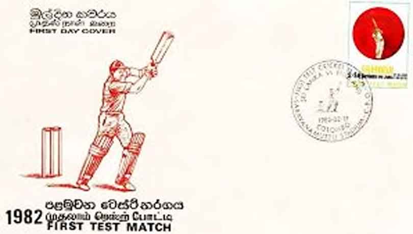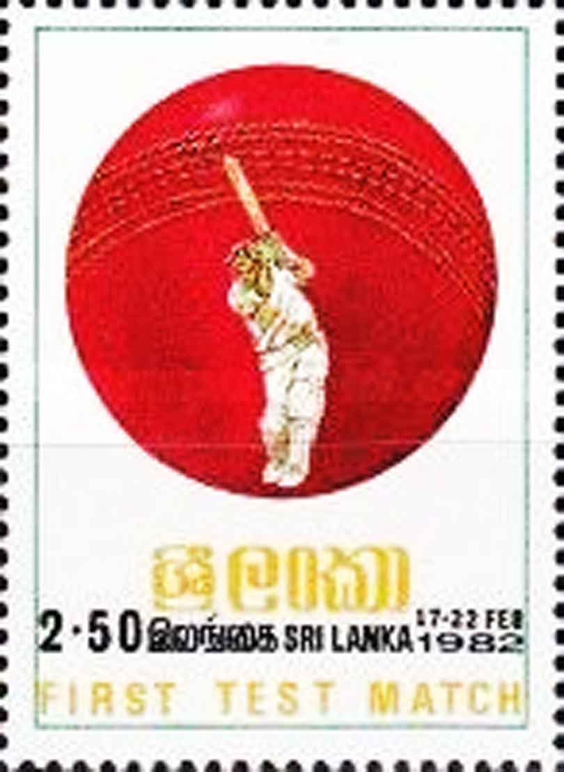 Sri Lanka’s inaugural Test match was played against England from February 17 – 22, 1982. On the first day of this historic match, the very first Sri Lankan cricket stamp was issued. A specially designed First Day Cover was also released to mark this milestone.